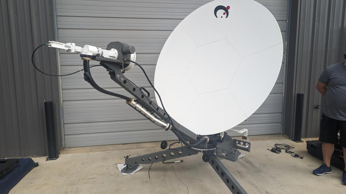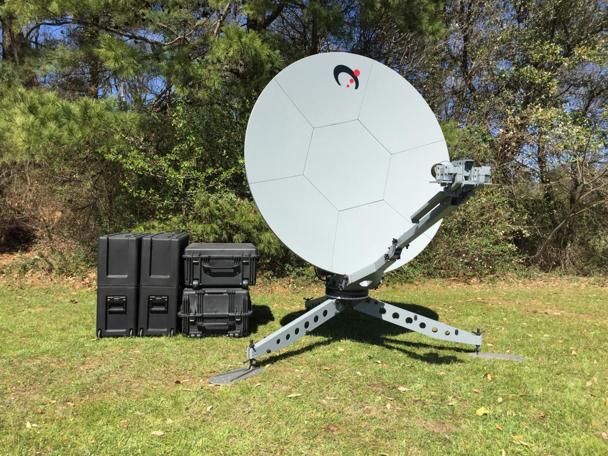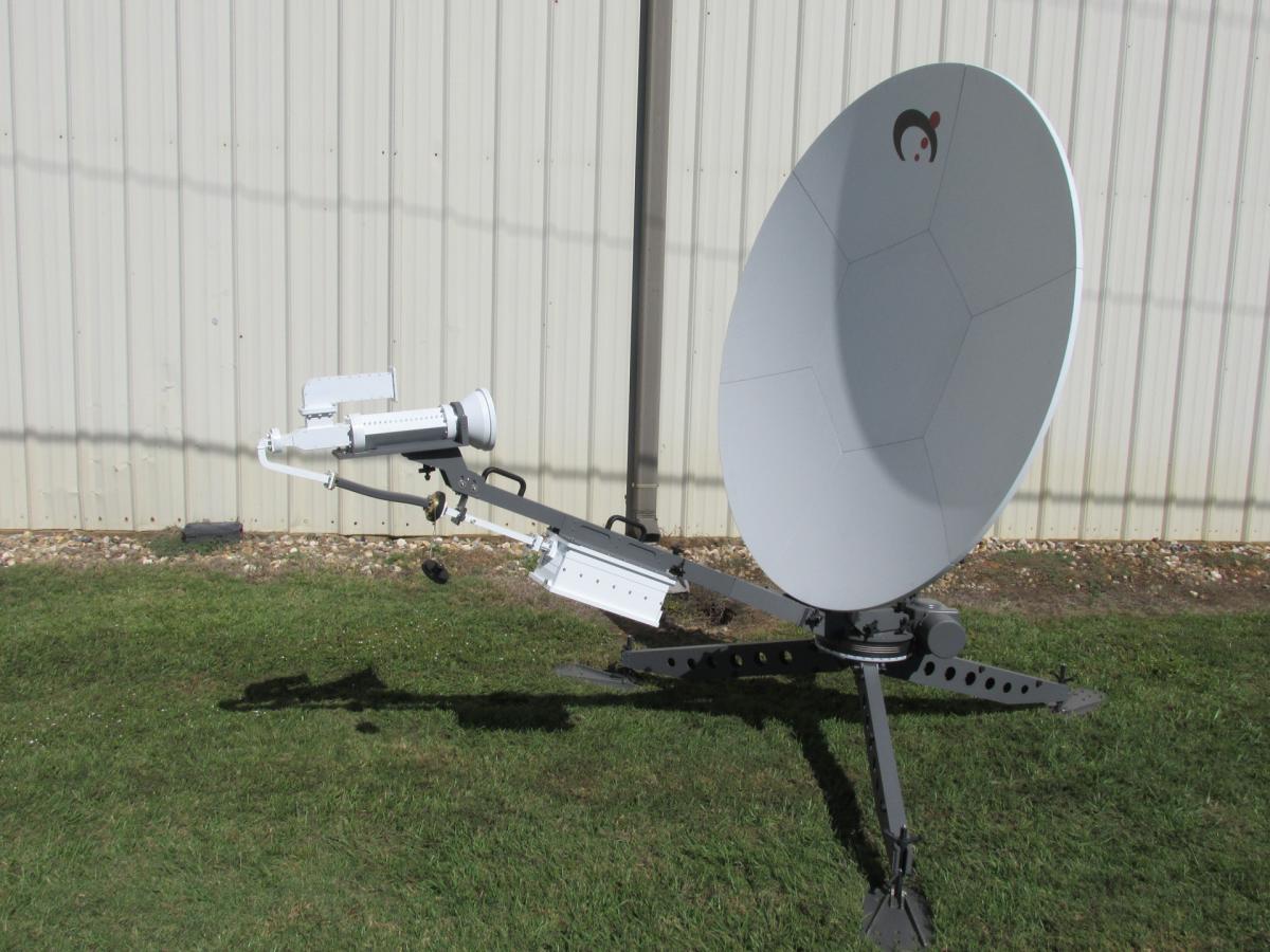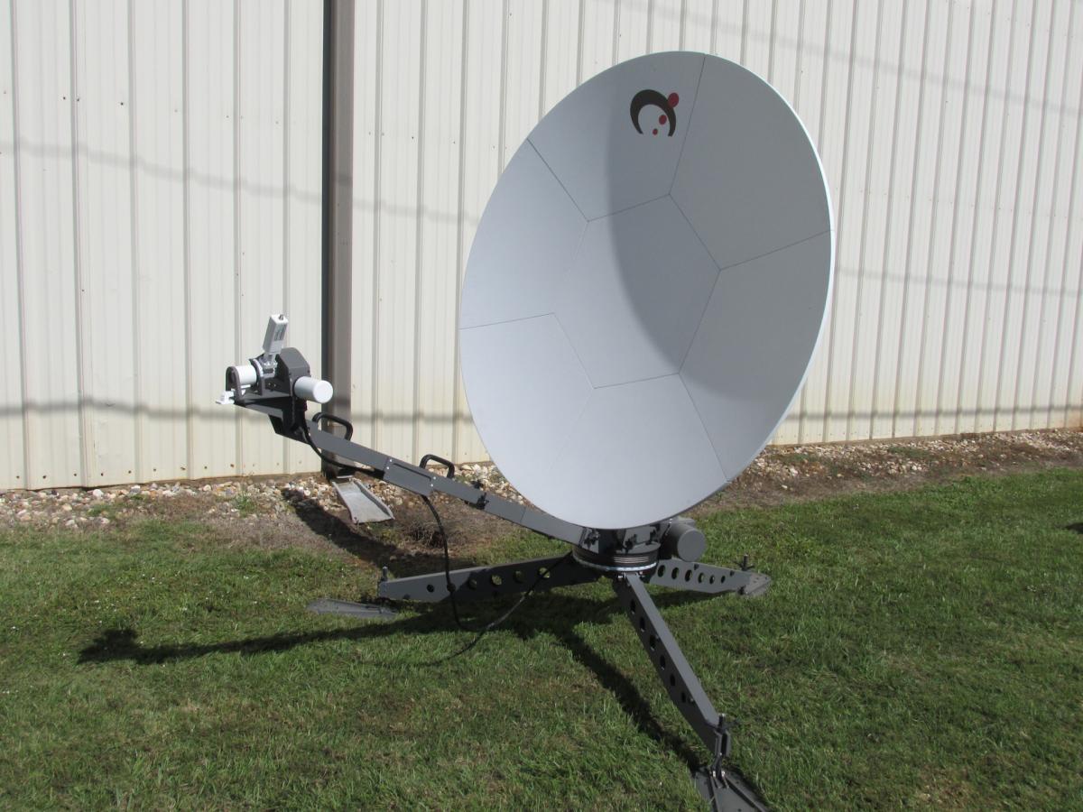 The Sat-Lite Technologies Model 1831 Agilis motorized carbon fiber flyaway antenna offers superior performance in a lightweight, portable package. This antenna features a 7 piece carbon fiber segmented reflector designed to provide high gain and low cross pol characteristics. The motorization package includes a ruggedized outdoor mounted controller with pre-connectorized cables allowing for quick assembly and disassembly. The custom designed elevation-over-azimuth tripod pedestal provides high stiffness with minimal weight. The antenna components are modular in design which also reduces